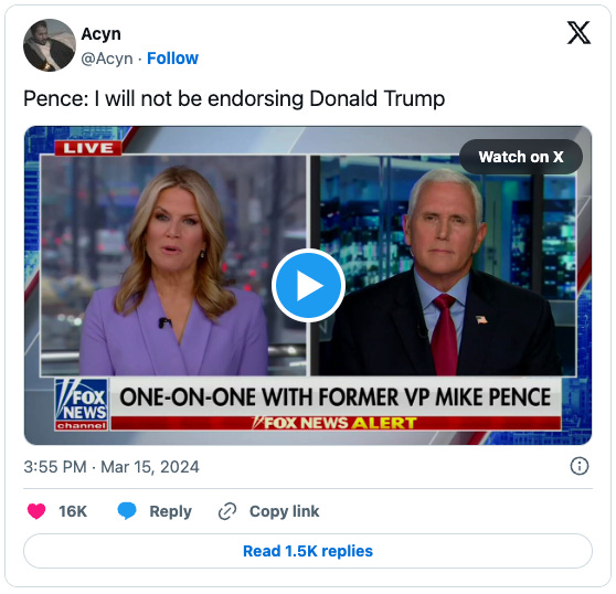 Former Obama White House official Dan Pfeiffer notes: “I can’t believe I am writing this, but Donald Trump’s Vice President refusing to endorse him is a big deal, and overly cynical Democrats like myself shouldn’t dismiss it outright.”