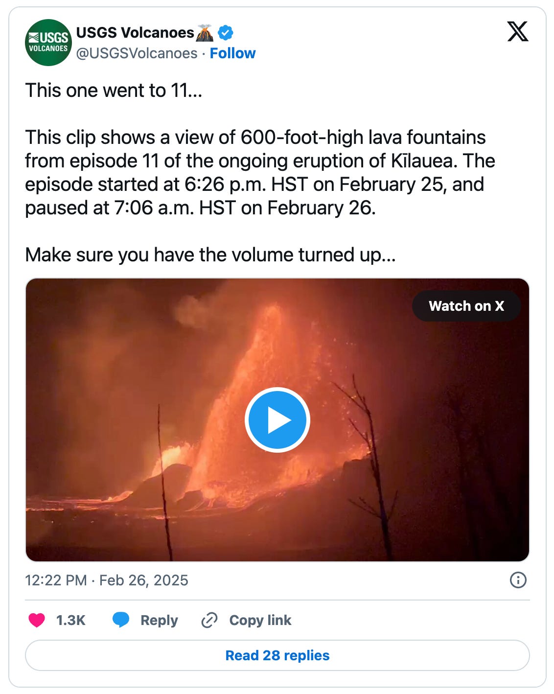The 11th episode in the months-long intermittent summit eruption at Kilauea produced fountains of lava this week taller than the Washington Monument: