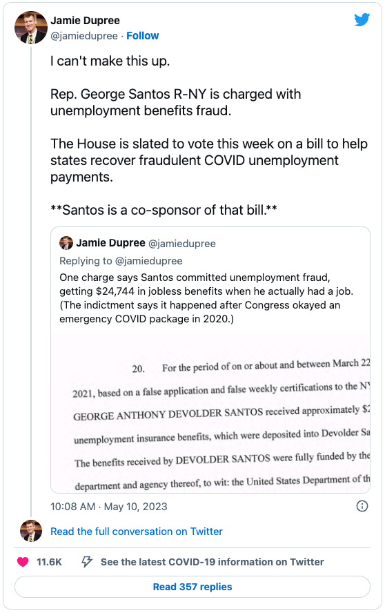 Our team did a great job unpacking the federal indictment of George Santos. I’m not going to rehash all that again here, but if you want to go deeper on the charges, former U.S. Attorney Joyce Vance is there for you.