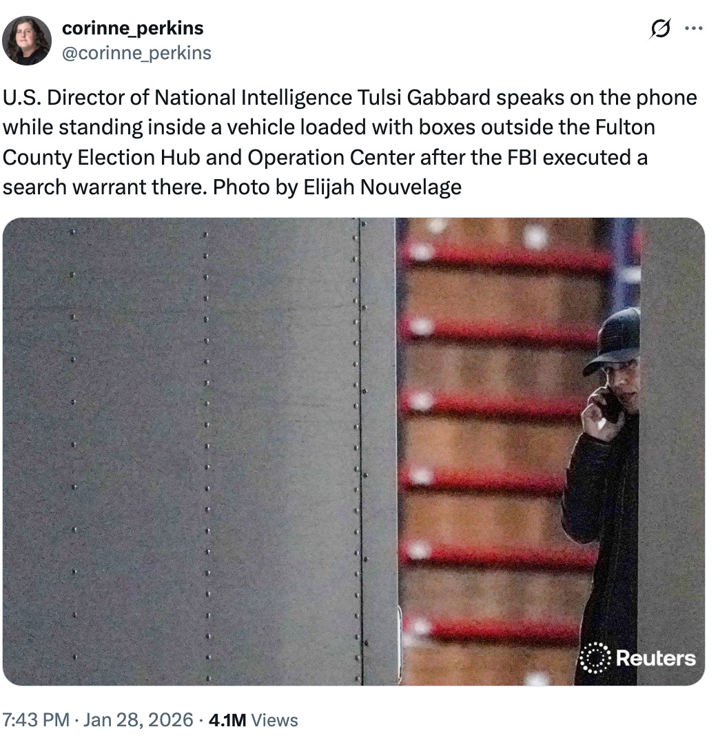 In Georgia, the FBI executed search warrants on the Fulton County voting center on Wednesday, retrieving ballots and other election administration records from the 2020 election in a Big Lie-fueled move that was as absurd as it was dangerous. More than five years after the election, Trump is still chasing his white whale of election fraud and a host of DOJ and FBI appointees are eager to oblige. The theatrical move checks the box for loyalty, keeps the Big Lie alive, sows doubt about any future Trump loss, and creates the kind of MAGA spectacle that Trump loves.