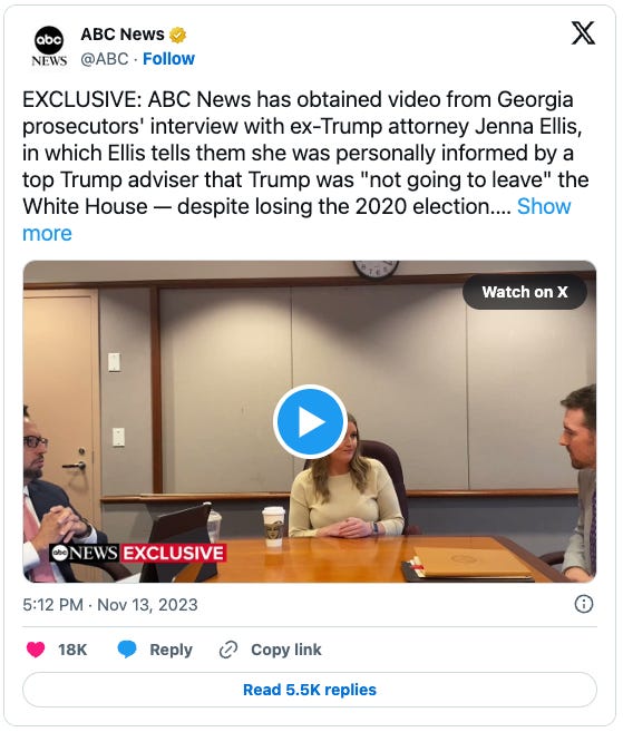 ABC News was first out of the gate with portion of the proffer sessions of Jenna Ellis and Sidney Powell.