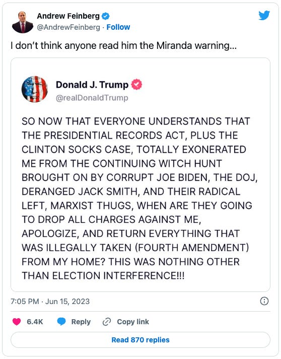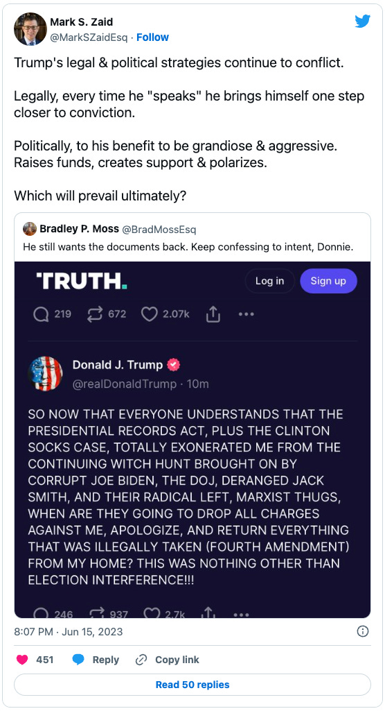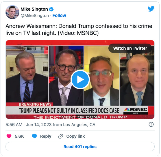 His post-arraignment speech at Bedminster earlier in the week was also a classic example, as former Mueller prosecutor Andrew Weissman observed: