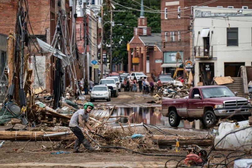 The storm-ravaged people of southern Appalachia are too busy cleaning up, digging out, and trying to find small moments of normalcy to keep themselves sane to notice much of the national political conversation. That is a small blessing amidst the carnage in their lives.