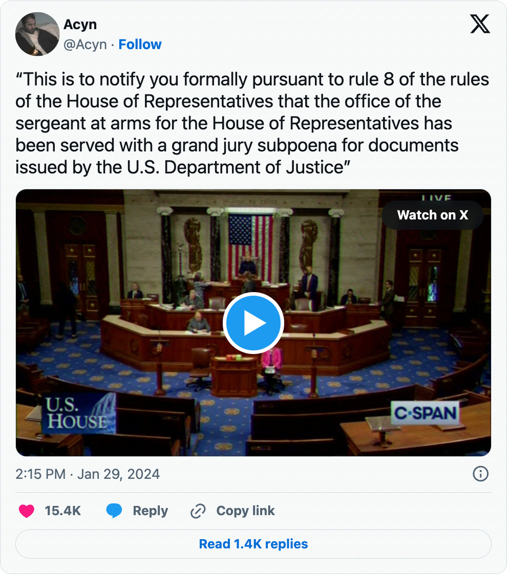 Later in the day, reports emerged that the Justice Department is investigating a not-yet-named-publicly House Democrat for alleged misuse of government funds for personal security.