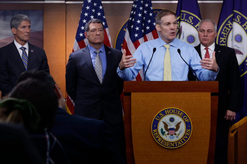This rule-change vote could jam things up: the measure is being pushed by Rep. Chip Roy (R-TX), seemingly with an interest in avoiding the one-million rounds of votes the House endured during Kevin McCarthy’s election in January. Backed by at least 100 House Republicans currently — including Jordan — Roy wants to raise the threshold for bringing a nominee to the floor for a roll call vote.
