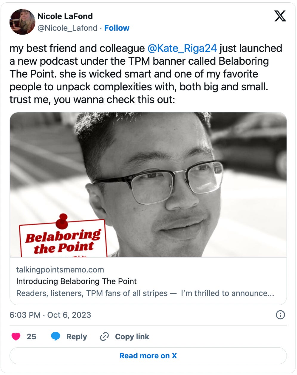 Thanks for reading today’s Morning Memo. If you haven’t yet, I hope you will become a TPM member! You can find the TPM members’ commenting section here.