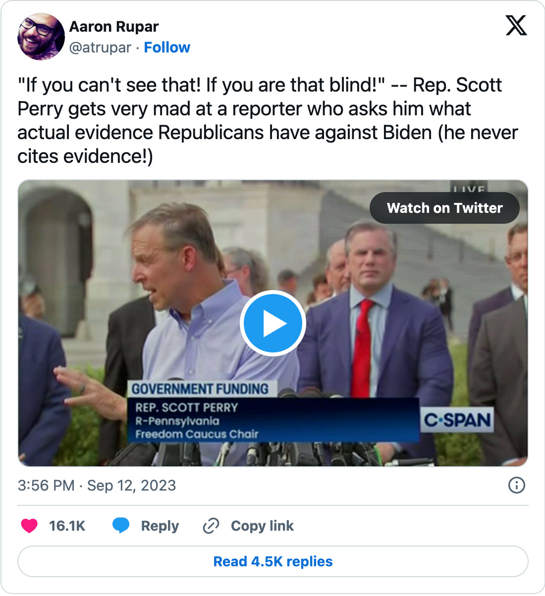 It is of course laughable and a disgraceful abuse of power while also being potentially effective, so long as the DC press corps lives up to GOP’s quite-low expectations. So far so good on that front. Political journalism still isn’t up to this task. More on that in the coming days at Morning Memo.