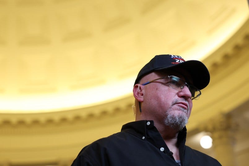 Oath Keepers founder Stewart Rhodes was back on Capitol Hill within hours of Trump’s pardon and his release from prison for seditious conspiracy. Rhodes and Enrique Tarrio of the Proud Boys, who was also pardoned and released, each called for retribution against those who prosecuted them.