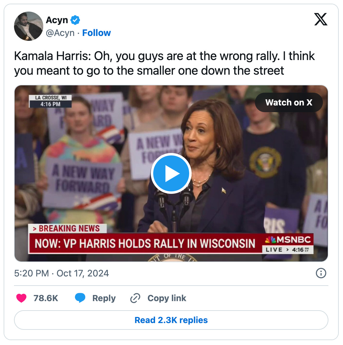 “So now, we here, know Jan. 6 was a tragic day. It was a day of terrible violence. There were attacks on law enforcement — 140 law enforcement officers were injured, some were killed. And what did Donald Trump say last night about Jan. 6? He called it a ‘day of love,’” Harris told a rally in Wisconsin Thursday.