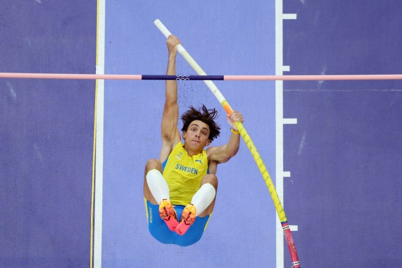 You can’t beat that Cajun-Swedish combo. The greatest pole vaulter who ever lived capped his gold medal performance at the Paris Olympics with another world-record height, beating his own prior record(s).