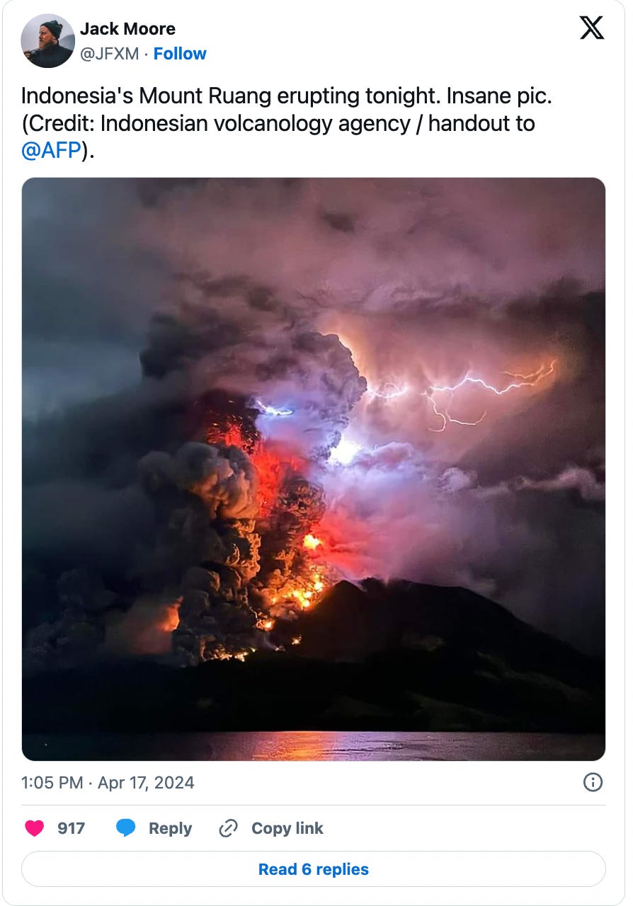Just one of the incredible shots of this week’s eruption of Mount Ruang in Indonesia: