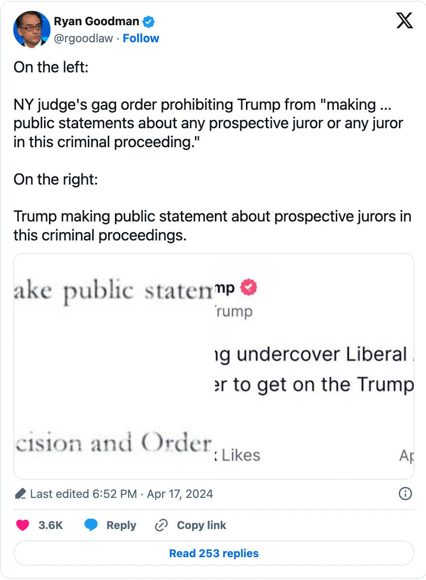 Trump may have violated the gag order yet again, with a social media post targeting prospective jurors: