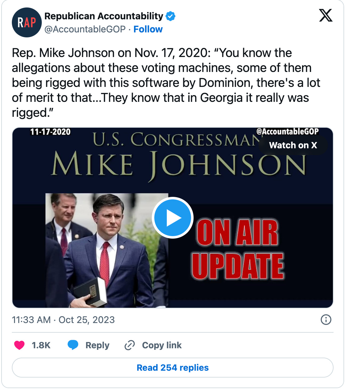 WaPo: New speaker Mike Johnson’s 2020 election denial could have 2024 implications