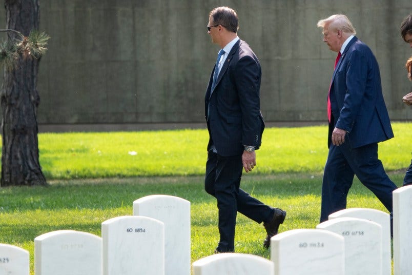 The verbal abuse: “When the cemetery official tried to prevent Trump campaign staff from entering Section 60, campaign staff verbally abused and pushed the official aside, according to the source.”