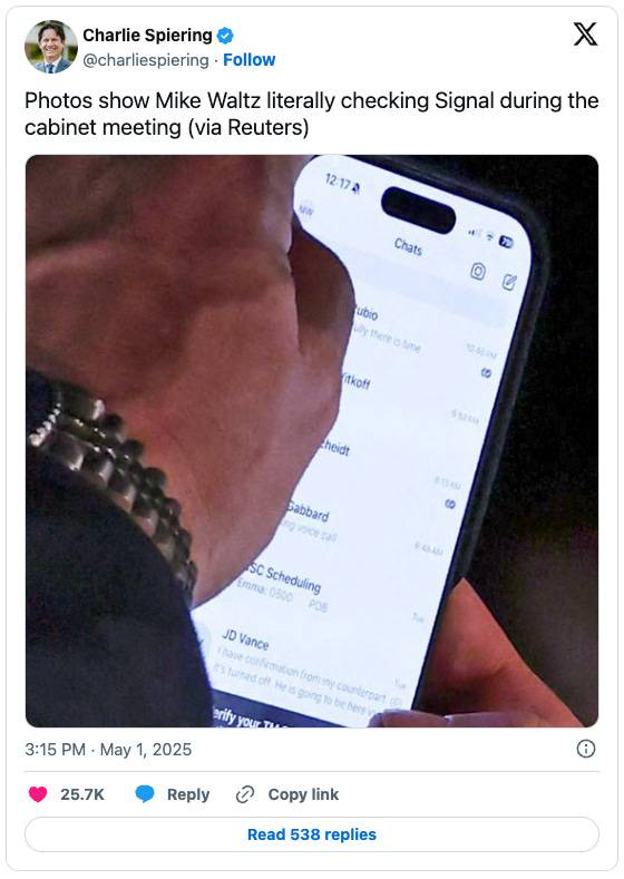Shuffling Signal-addict Mike Waltz out of his role as national security adviser and into the gauntlet of a Senate confirmation hearing to be UN ambassador is one twist in this reality TV presidency I can get on board with: