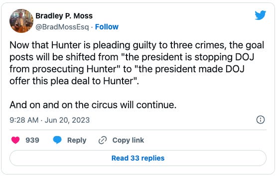 The Deep State is at once all-powerful and feckless. Biden is both protecting his son and letting him be convicted. A failure to prosecute is corrupt. So is a decision to prosecute.