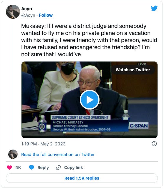 One highlight of the hearing was former Attorney General Michael Mukasey being 100% on brand: