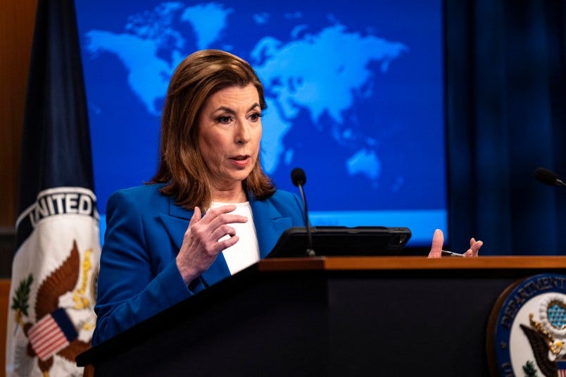 But the information about what legal authority the administration purported to rely on apparently didn’t make it to the State Department before this awkward display by spokesperson Tammy Bruce: