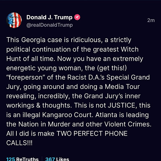 Former President Trump was inexplicably giddy after he wasn’t named in the excerpts released last week of the report of the Georgia special grand jury investigating his role in tampering with the state’s 2020 election. No one was named in the excerpts, which is why a judge authorized their release. Trump’s chicken is coming home to roost: