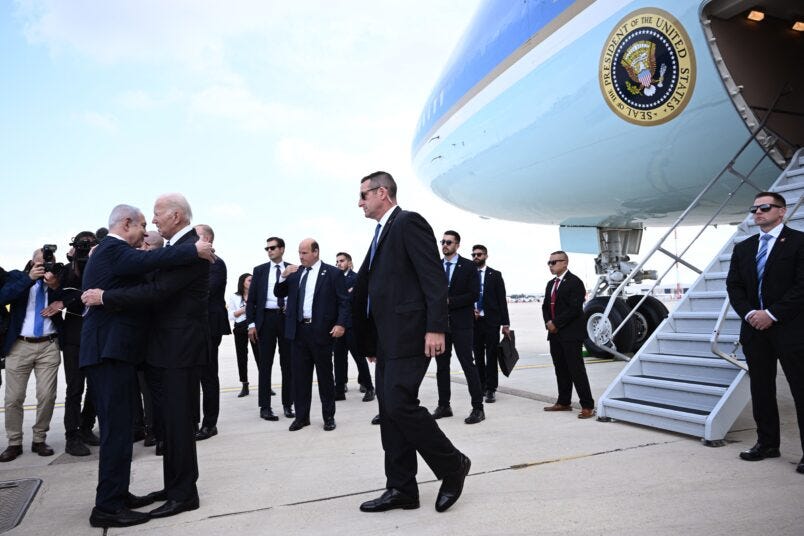 President Biden landed in Tel Aviv overnight, where he suggested the hospital explosion in Gaza wasn’t the fault of the Israelis: “Based on what I’ve seen, it appears as though it was done by the other team.”