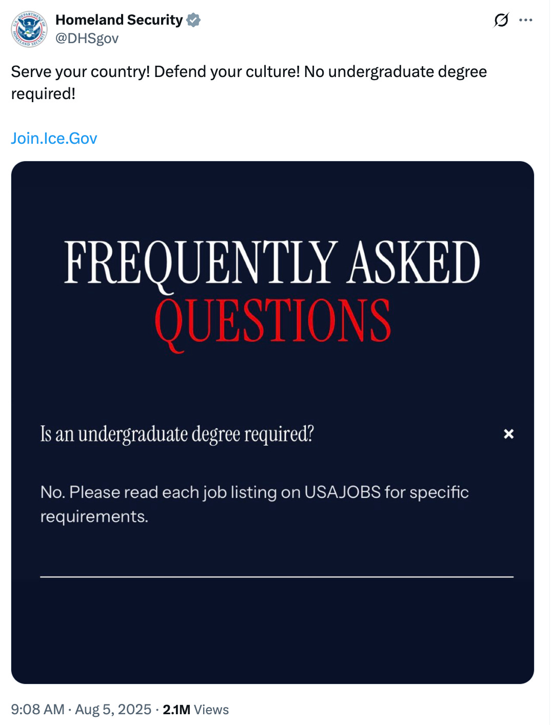 The Department of Homeland Security’s new recruitment push – dubbed “Defend the Homeland” – includes the nationalistic blood and soil call to “defend your culture!”