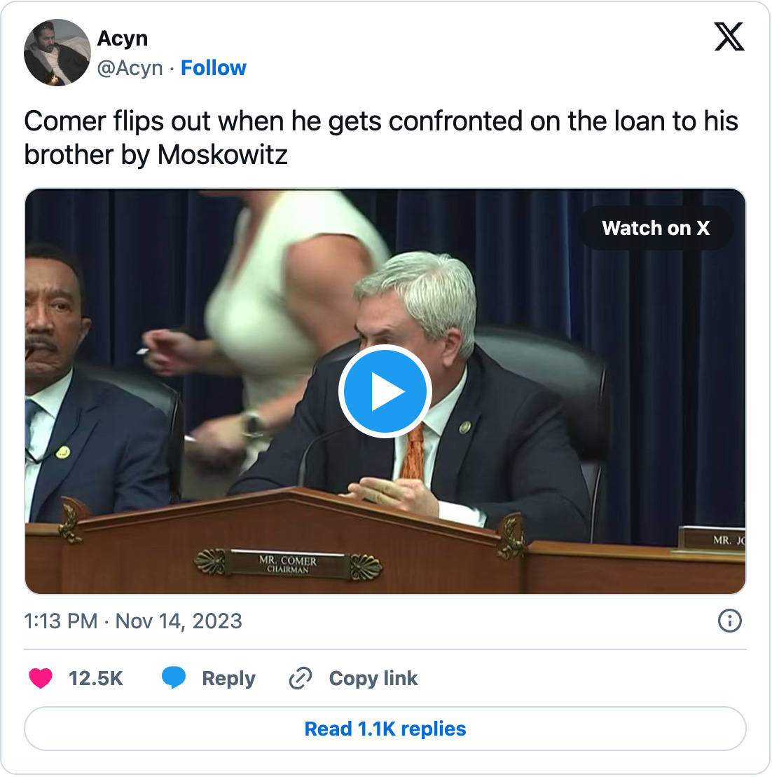Democrats on the Chairman James Comer’s Oversight Committee are becoming more aggressive in challenging his bogus investigations, and Comer doesn’t like it one bit: