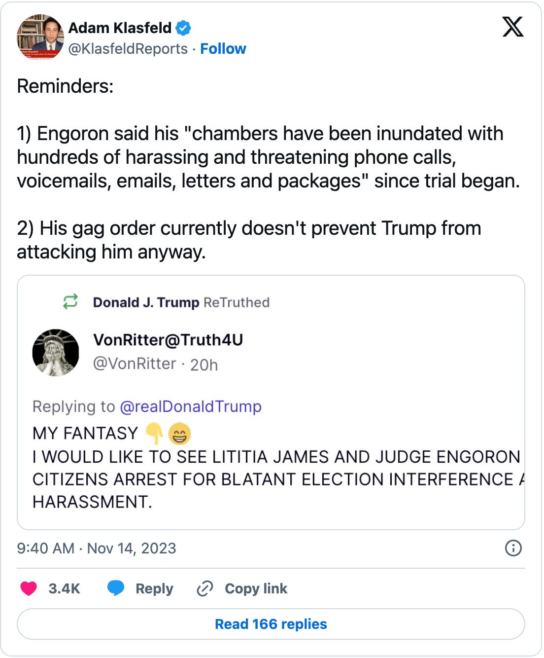 State Judge Scott McAfee has scheduled a hearing on Willis’ emergency request for 1:30 p.m. ET today via Zoom. Trump and other defendants are opposed to the protective order.