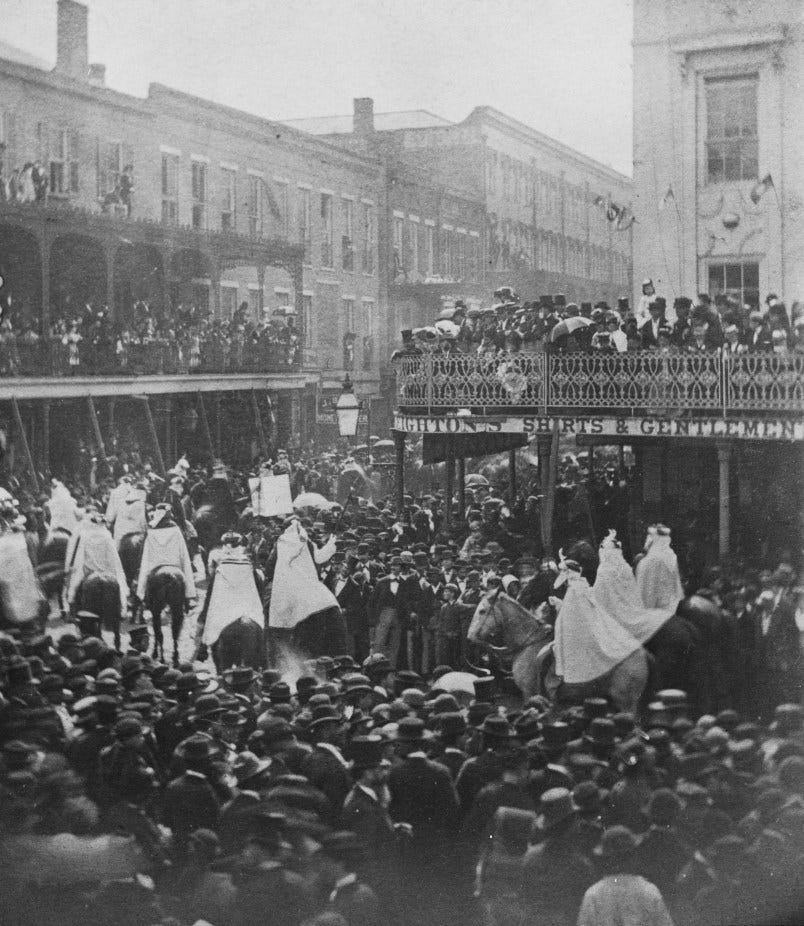 I went looking for the oldest photograph of New Orleans Mari Gras that I could find in our Getty photo archive, and this 1875 shot is what it yielded. Enjoy the day, even if only vicariously.