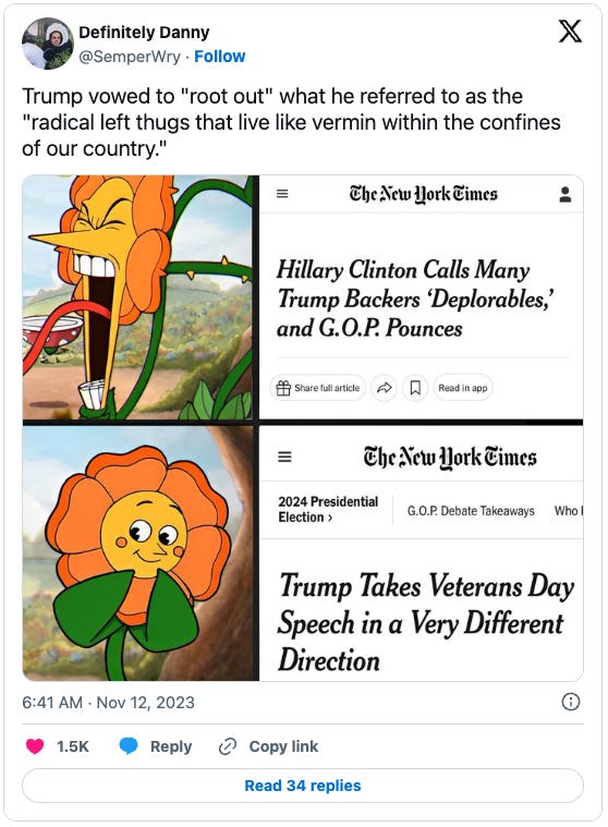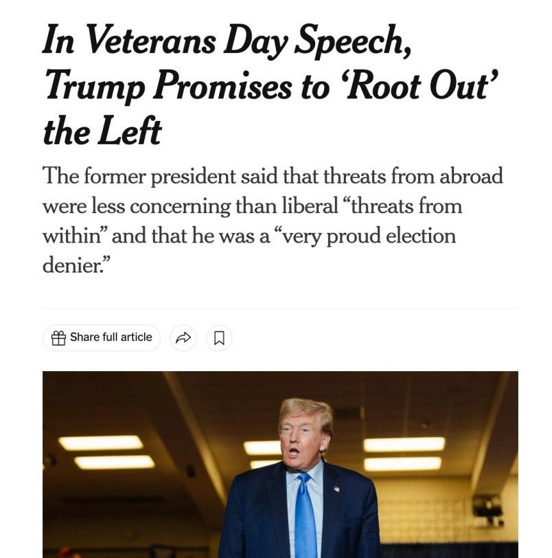 Good for all of those calling out the NYT for their normalizing headline and article on tfg’s Hitler redux plan. We all need to call out all media that does this. It’s heartening to see the headline change. And how do we change the negativity bias/fear factor click bait model that seems to sell newspapers? Real question for those who may have ideas.