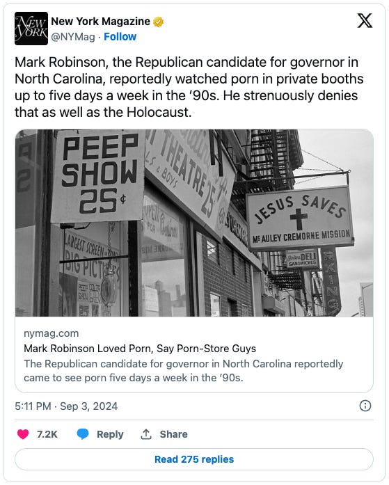 Lt. Gov. Mark Robinson (R-NC), the GOP nominee for governor with a long history of online extremism, allegedly had a different pastime in his pre-Facebook days, according to the North Carolina news site The Assembly. That prompted this tweet for the ages: