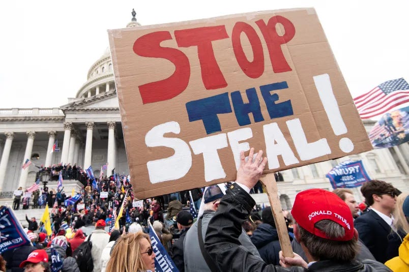 “Stop the Steal” is malleable and flexible. It’s the Big Lie of the 2020. It’s the Big Lie of 2024, too, with Trump already seeking to delegitimize any election he doesn’t win. It can mean the bogus “election interference” he is now claiming.