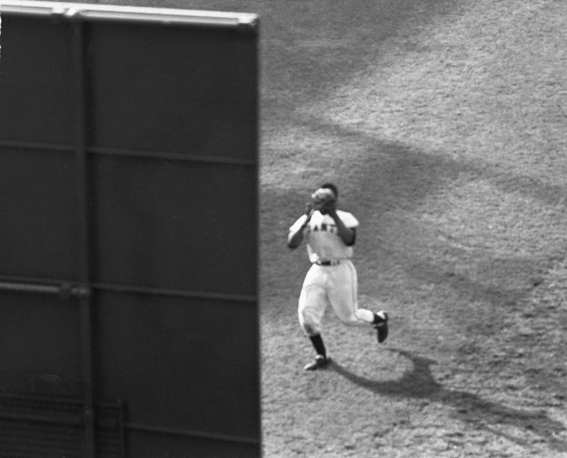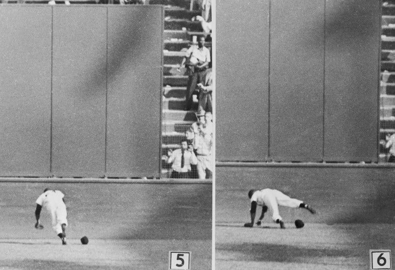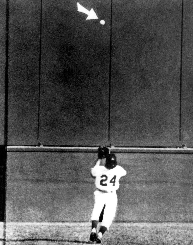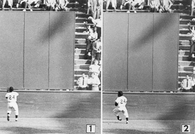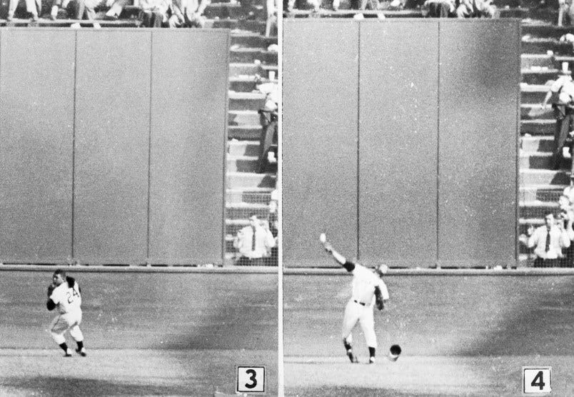 The above photo was taken of the eventual all-time great in May 1951, his first month in the majors. It was one of the earliest dated photos I could find of Mays in our archive. The other thing I found in sifting through the old photos were some angles on the The Catch, the most famous play in baseball history, that I had never seen before. You can easily find the video on YouTube and you’ll probably see it a dozen times this week as the memorials for Mays flood in, but there’s something about these stills that make it feel even more legendary: