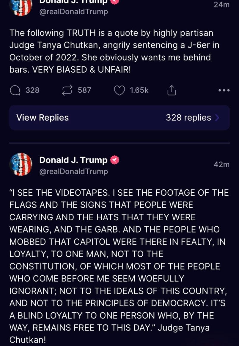 In posts and reposts on his Truth Social platform, Trump impugned Chutkan, her motives, and the proceedings against him. Not surprising or unprecedented to anyone who has paid even a smidge of attention to Trump’s history of acting out in legal matters, but no less damaging or destructive or corrosive to the rule of law.