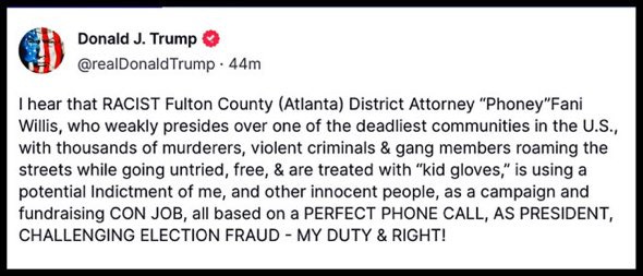 For good measure, Trump launched a new attack on Fani Willis, too: