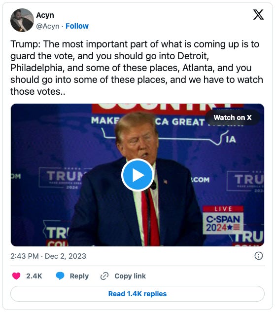 Trump is seeking to delegitimize, undermine and indeed threaten free and fair elections in majority Black urban areas in 2024: