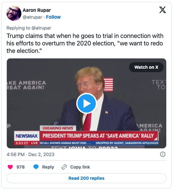 Even as we contend with the slow-moving legal accountability for Donald Trump’s past misdeeds, he continues to engage in the same conduct that led to his indictment for subverting the 2020 election and is now directing it toward the 2024 election.