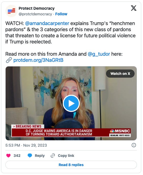 Amanda Carpenter, a one-time aide to Sens. Jim DeMint (R-SC) and Ted Cruz (R-TX) who has become a relentless Trump critic, offers a helpful breakdown of three categories of what she calls Trump’s “henchmen pardons”: