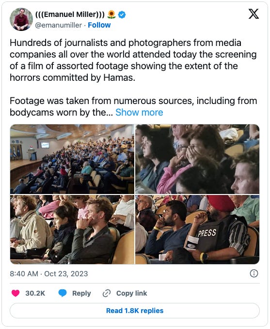 The Israeli military convened reporters Monday to show them body cam footage from captured Hamas militants as a way of countering denials that the brutal Oct. 7 attack took place: