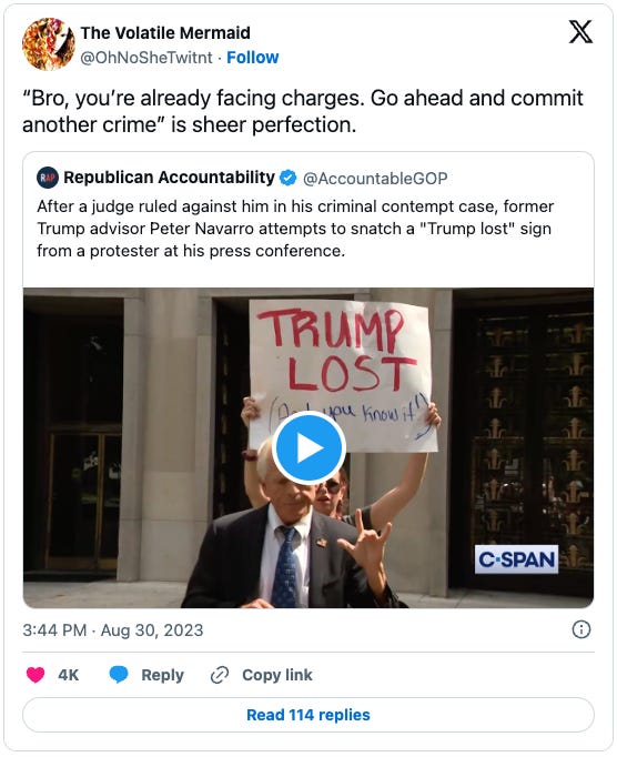 Former Trump White House official and all-around goof Peter Navarro lost his bid to delay his contempt of Congress trial when U.S. District Judge Amit Mehta ruled that former President Trump had not invoked executive privilege on Navarro’s behalf.