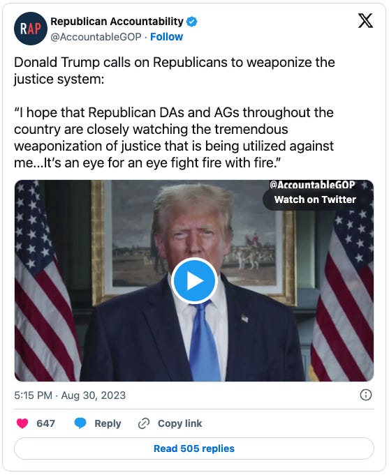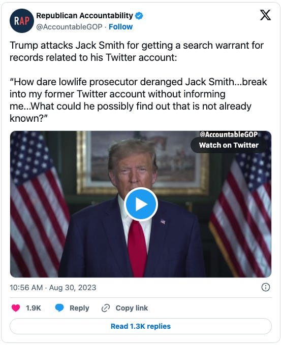 In recent days, despite being a criminal defendant in four different jurisdictions and at risk of violating the terms of his pre-trial release, the out-of-control former president has continued to launch screeds against prosecutors, judges, witnesses, the FBI, DOJ, and the justice system broadly.