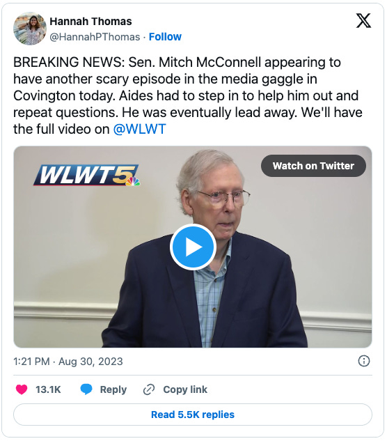 Another disturbing frozen-in-public moment for the 81-year-old Senate minority leader:
