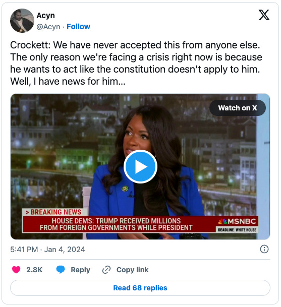 Rep. Jasmine Crockett (D-TX) on a roll: