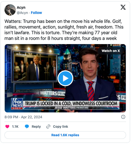 Judge Juan Merchan is expected to take up Trump’s 10 alleged gag order violations in a hearing at 9:30 a.m. ET, before trial resumes later this morning. This can go in a lot of different directions, so I’m not to make any predictions. I would keep your expectations very low that Trump is going to be hauled off to jail this morning.