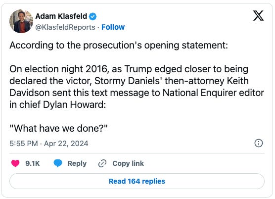 That sets up the challenge of having to overcome the expected testimony of Daniels about the sex, in addition to all the testimony from Michael Cohen, David Pecker and others about how this transaction worked, what it was for, who was involved, etc.