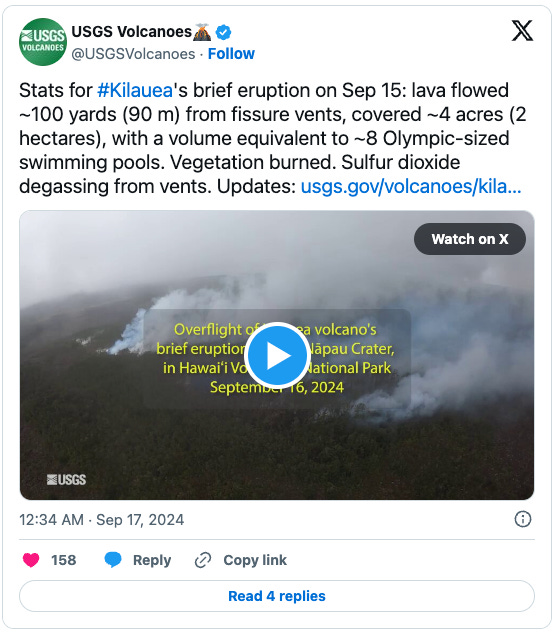 Magmatic movement over the weekend culminated in a small eruption on the flanks of Hawaii’s Kilauea volcano Sunday night. The eruption paused most of Monday but resumed late in the day and continued after darkness fell. Here’s an overflight of the two new rifts that opened overnight Sunday:
