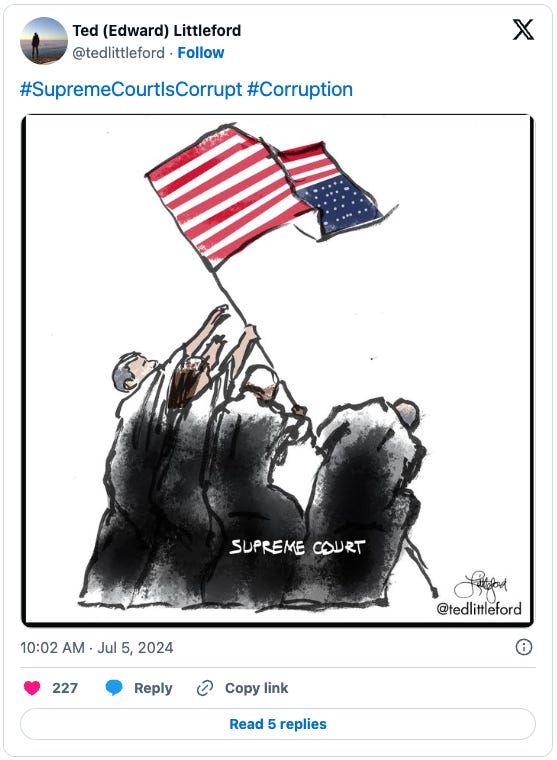 One week ago today the Supreme Court issued its landmark decision in U.S. v. Trump, creating a monarchial presidency the likes of which the founders would have taken up arms against.