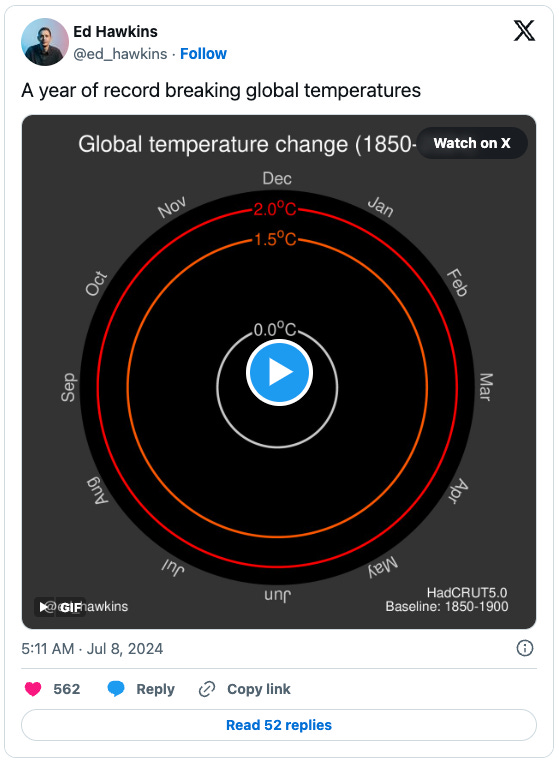 For the casual observer, it’s worth noting that Beryl was doing climatologically crazy stuff last week in the tropical Atlantic and Caribbean. With record-high sea surface temperatures creating conditions not typically found until the August/September peak of the hurricane season, Beryl was able to do things in terms of intensity and location at a time of the year that simply would not have been physically (as in, physics) possible before.