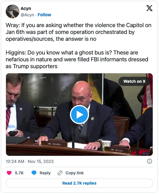 Higgins made a fool of himself quizzing FBI Director Chris Wray about it in a congressional hearing yesterday: