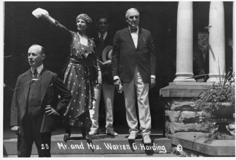 Trump was on the road in North Carolina yesterday, so he’s not ensconced like a late 19th century pol on his Ohio porch greeting visitors (or like the photo above of the 1920 campaign of Warren Harding, our previously most corrupt president, with due respect to Tricky Dick). But his campaign schedule has been awfully light, and he’s holding pressers in Florida and New Jersey, two states very much not in play.